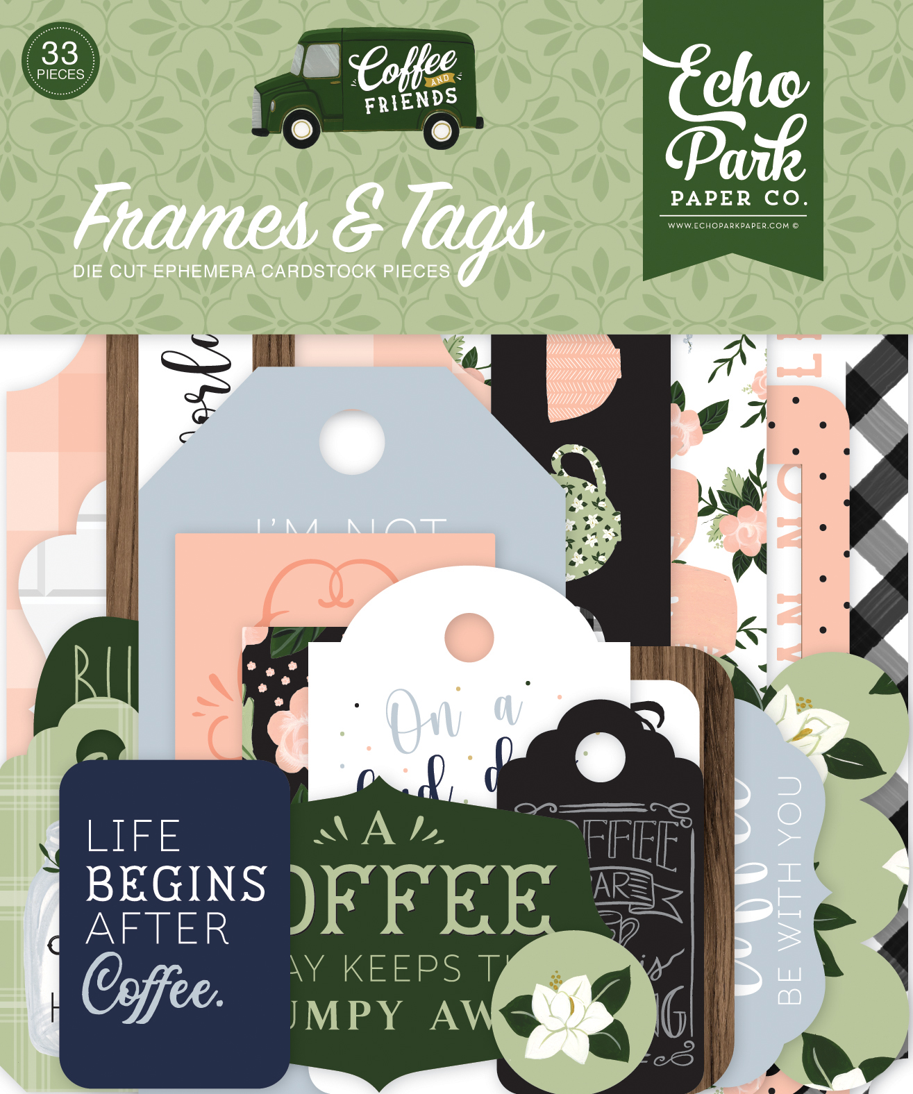 Frames and Tags Ephemera Die Cut Cardstock Pack. Pack includes 33 different die cut shapes ready to embellish any project.