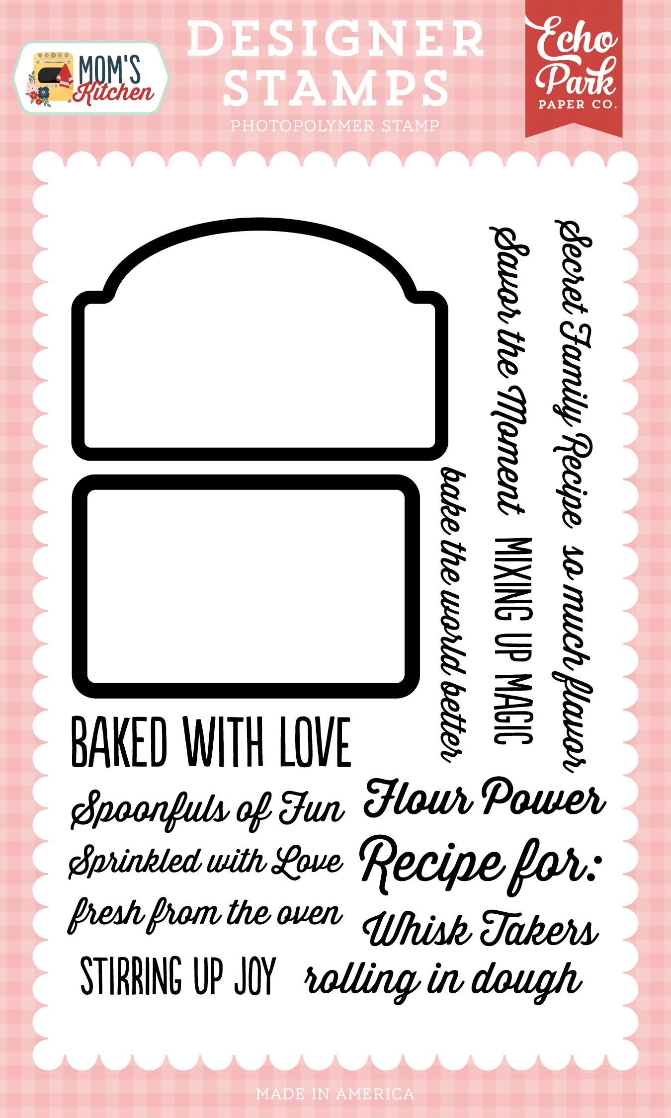 Mom's Kitchen - September 2025 - 4" x 6" Photopolymer Stamp Set. Sold in sets of 3. Suggested Retail Price is $12.99 per piece. MADE IN THE USA