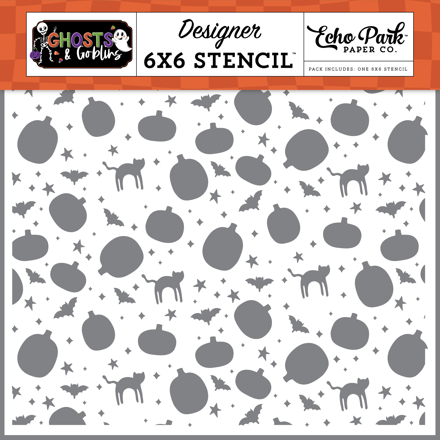 Ghosts and Goblins - July 2025- 6" x 6" Stencil. To be used with ink, mists, paints or other similar applications. Easy to wipe clean and re-use. Stencils are sold in sets of 6. Price shown is for one set of six stencils. Suggested Retail Price is $6.99 per piece. MADE IN THE USA.