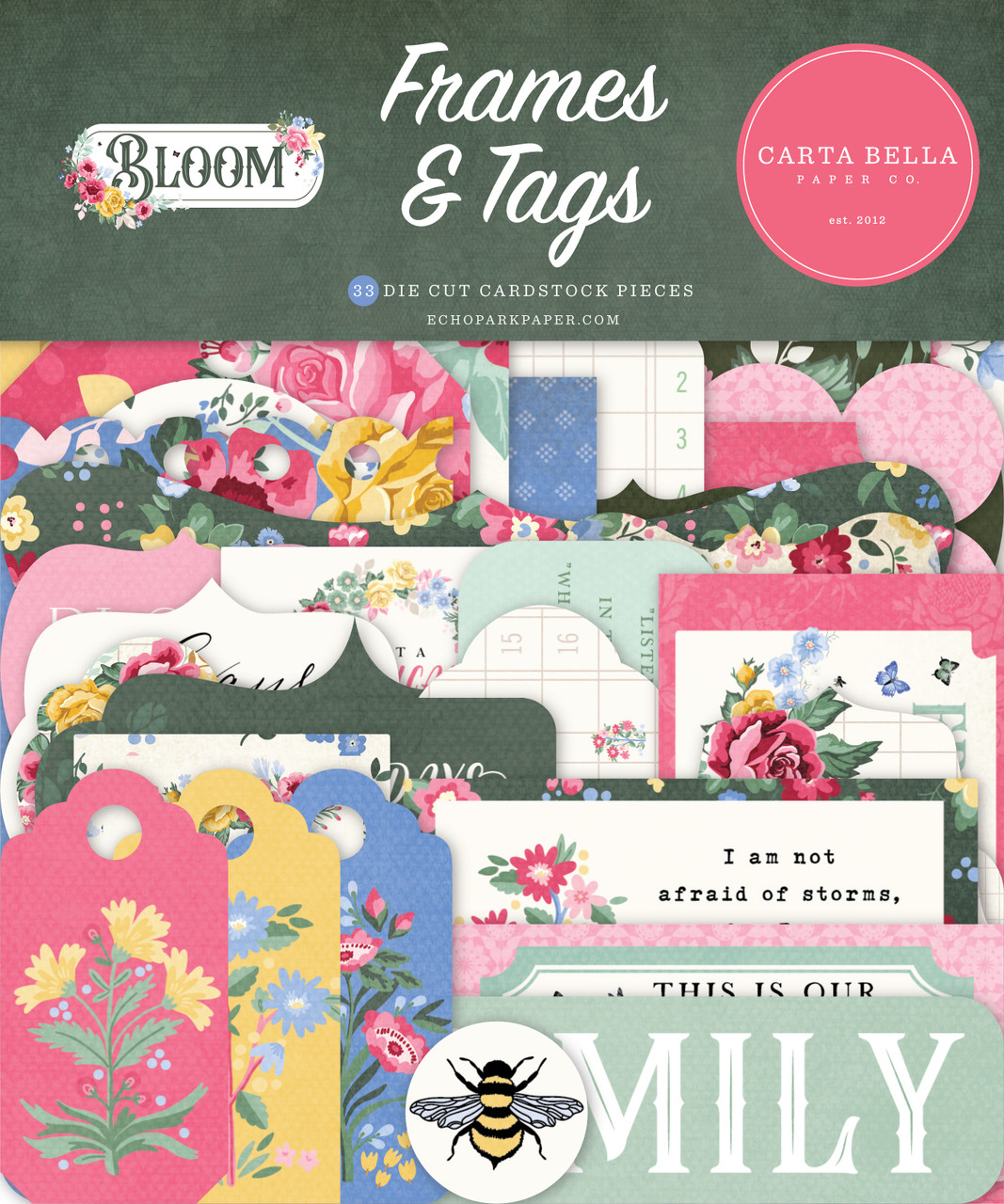 Bloom - March 2024 - Ephemera Die Cut Cardstock Pack. Pack includes 33 different die cut shapes ready to embellish any project. Package size is 4.5" x 5.25" Ephemera packs are sold in sets of six. Price shown is for six. MADE IN THE USA Suggested Retail Price is $4.99 per piece.