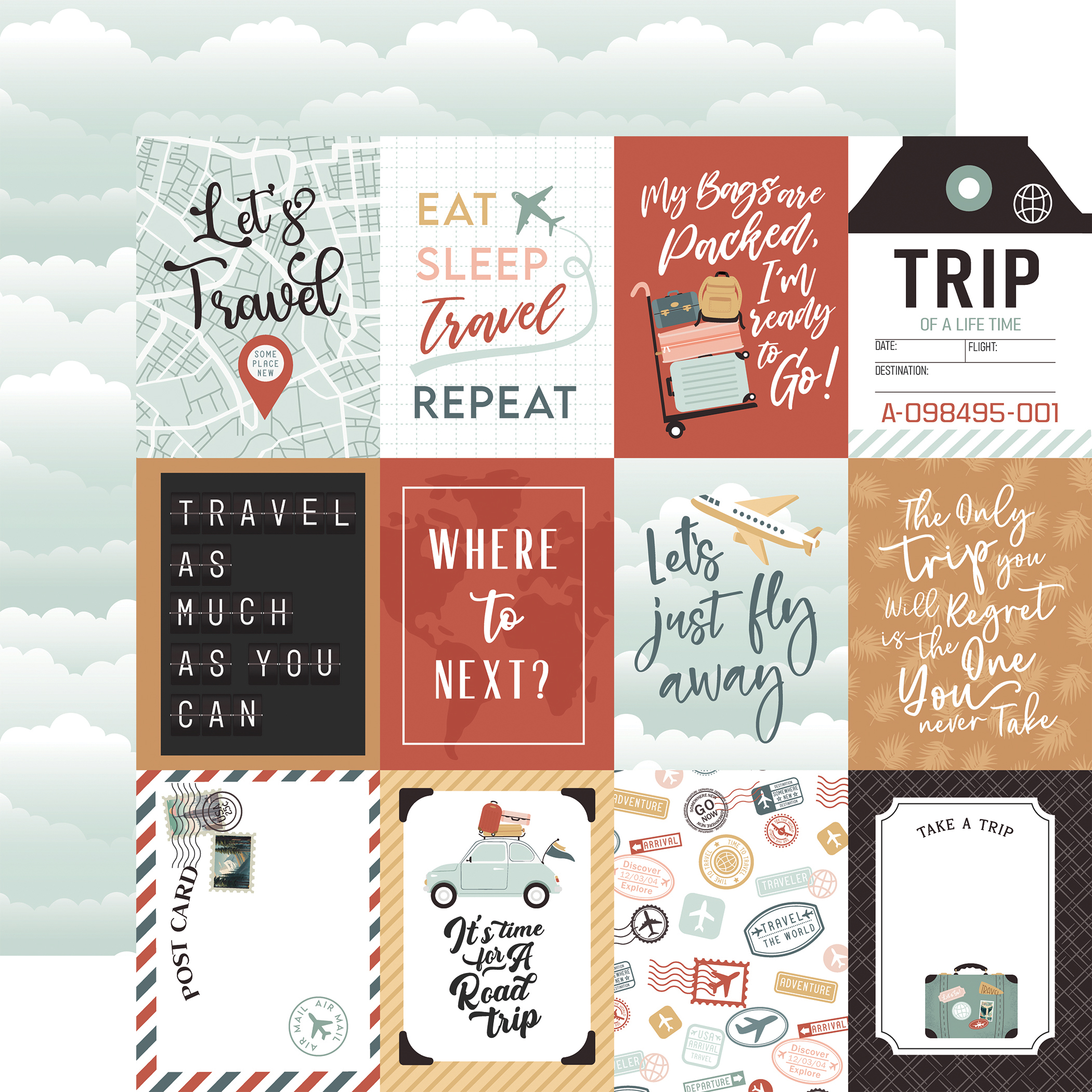 Let's Take The Trip - March 2024 12x12 Patterned Paper. Printed two sides on 65lb Accent Opaque Cardstock. Paper sold in packs of 25 sheets per pack. Price shown is for one pack of 25 sheets. Suggested Retail Price is $1.09 per sheet.
