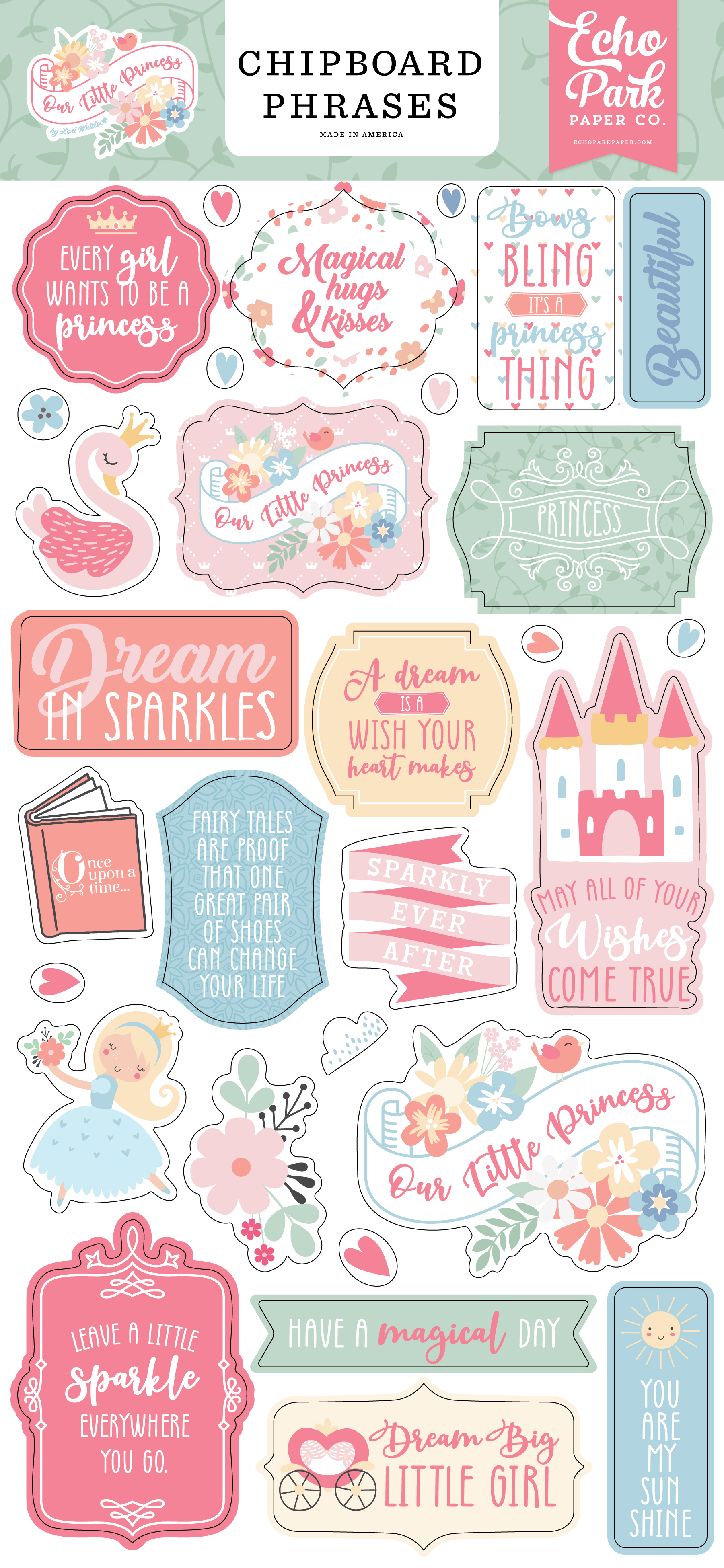 Chipboard Phrases are sold in sets of 6. Price shown is for one set of 6 chipboard sheets.