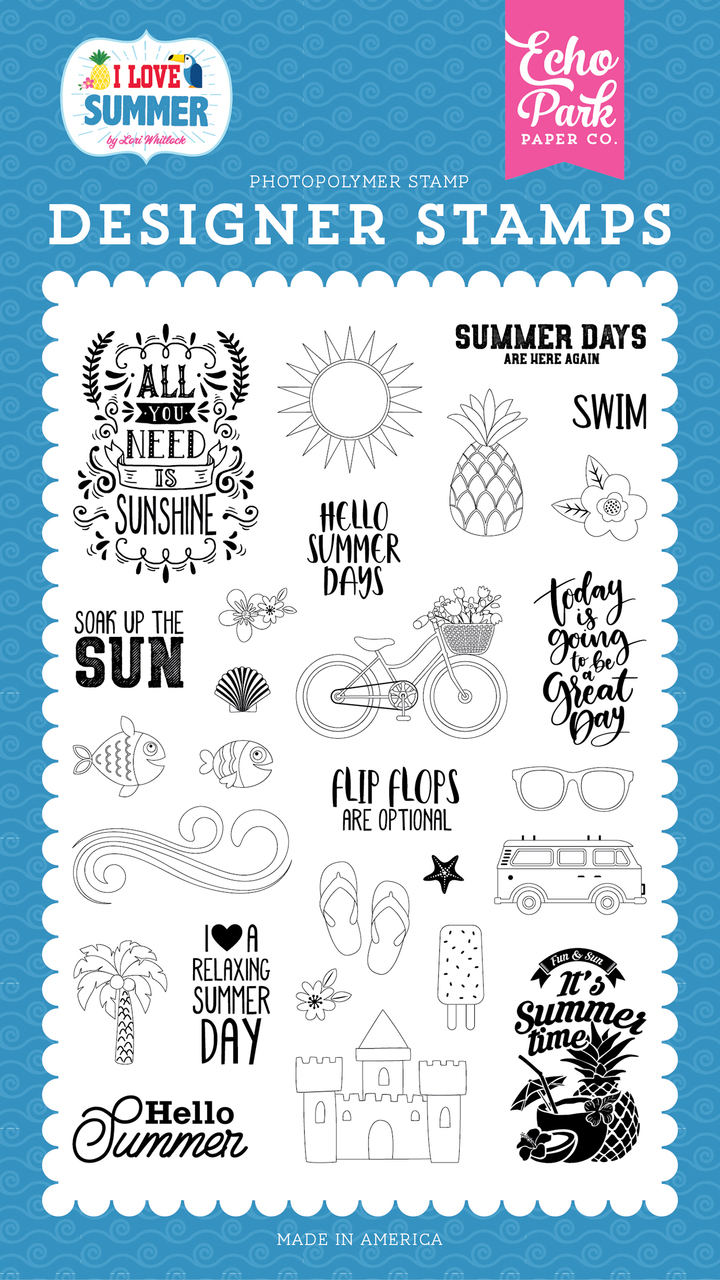4" x 6" Photopolymer Stamp Set includes 27 Stamps. For use with acrylic stamping blocks and stamping ink.