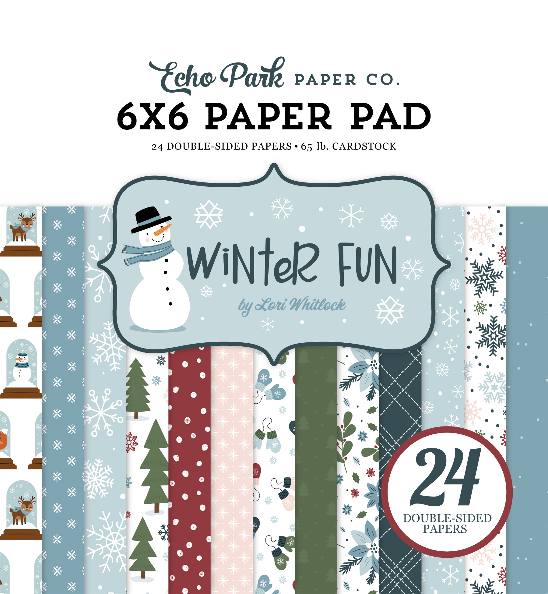Winter Fun - September 2025 - 6x6 Paper Pad. Includes 24 sheets double sided printed on 65lb Accent Opaque Cardstock. Images scaled down for use in card making and other similar applications. 6x6 Paper Pads are sold in sets of 6. Price shown is for one set of 6. Suggested Retail Price is $7.99 per pad.
